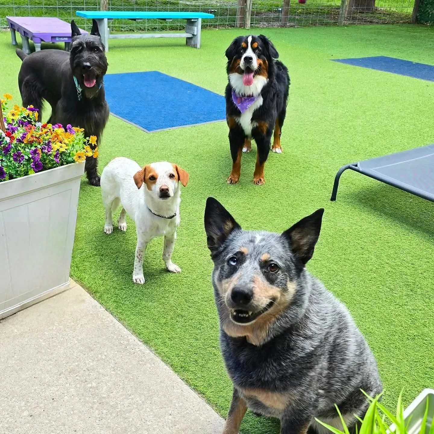 Our play groups are small, so each dog can express their personalities without feeling overstimulated. Each yard has ample space for those who want to run and others who prefer to relax in the sun.